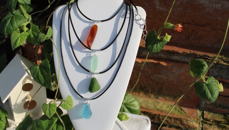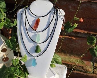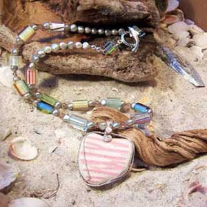 The colors of the glass are numerous, and some so rare that it is a memorable experience when finding. I had a friend pick up one of my gems and comment that when I looked at the glass I saw jewelry, while all she could see was an old Heineken bottle. Shards from Coca Cola bottles are quite beautiful. The color is a blue green and goes well with Fluorite beads.